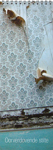 stilte' Zomaar een leeg stil straatje tussen grote straten in. Hier en daar wat zwerfafval en langzaam opdrogende plassen. Veel soorten dichte deuren. Vaak is niet duidelijk of daarachter een huis, een schuur, een garage of een atelier schuilgaat. Er mogen auto's rijden door de straat, maar dat gebeurt maar zelden. Het lijkt net of dat niet mag, maar in de straat is wel meer niet wat het lijkt. Op de achtergrond klinkt verkeerslawaai en verwaaien stemmen in de wind. Sporen van verf, een barst in een ruit en wat krassen op een deur vertellen in dit boekje elk het achterliggende verhaal. Het boekje bevat 22 foto's met 22 bijbehorende verhalen. Formaat: 10,5 x 30 cm. Prijs: € 15,- (nog enkele exemplaren beschikbaar) Bestellen: stuur een e-mail |