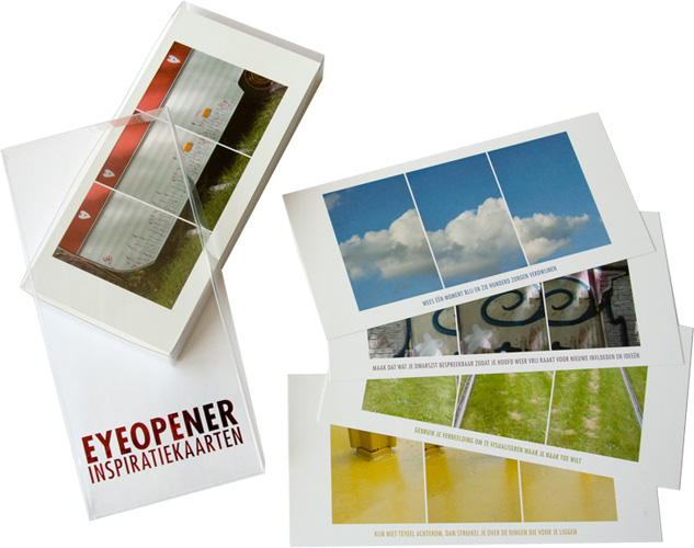 Eyeopener Anders dan anders zijn deze inspiratiekaarten. Een ware Eyeopener dus. Fotografe Petra Oldengarm maakte een serie van 55 inspirerende beelden en teksten voor de dagelijkse dosis inspiratie. Mooi verpakt in een transparant doosje. Een goed cadeau, zowel zakelijk als privé. Meer informatie over de inspiratiekaarten: www.eyeopener.nl Meer informatie over Petra Oldengarm: www.petraoldengarm.nl Prijs: € 19,95 Bestellen: stuur een e-mail |