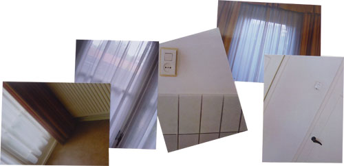 Setje van zes ansichtkaarten 'Wat huis, mijn lichaam is mijn huis!' is een tekst die ik ooit ergens tegenkwam en uitknipte. Ik moest eraan denken toen ik dit huis fotografeerde. Fluisterende vitrages, stille schaduwplekken, geduldige stopcontacten en gordijnen als een slecht zittend kapsel. Prijs: € 5,- (voor setje van zes ansichtkaarten) Bestellen: stuur een e-mail |