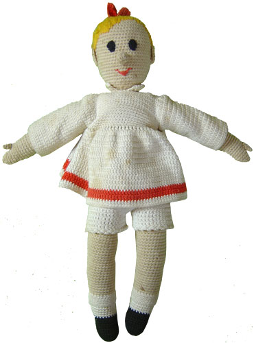 haakpatroon Van haken word je intens gelukkig. Zéker als hetgeen je haakt ook nog eens prachtig is. In de winkel staat nu alleen nog Wiske. Suske met rood truitje en zwart broekje aan is in de maak. Bij het haakpatroon zijn de materialen zoals katoen en haaknaalden niet inbegrepen. De poppen zijn ongeveer 40 cm. hoog. Wiske is al jaren de lievelingspop van mijn nichtje die ik voor haar haakte toen ze een baby was. Ik haak in wachtkamers, in het vliegtuig, tijdens luchtige gesprekken aan tafel, en overal waar ik niks hoef te doen maar even iets om handen wil hebben. Dat is zeer aan te raden. Prijs: € 7,50 Bestellen: stuur een e-mail |