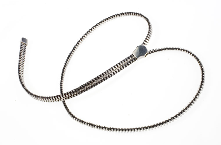 Zipper 'Wat valt er nou toe te voegen aan zo'n technisch wonder als een rits? Niks toch? Dat heb ik dus gedaan' zei de ontwerper Frans van Nieuwenborg: www.vannieuwenborg.nl De trekker en eindstop van de Zipper zijn vervaardigd van sterling zilver. Het ritsgedeelte bestaat uit zilverkleurig nikkelvrij metaal. Een dijk van een sieraad. Prijs: € 120,- Bestellen: stuur een e-mail |